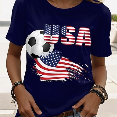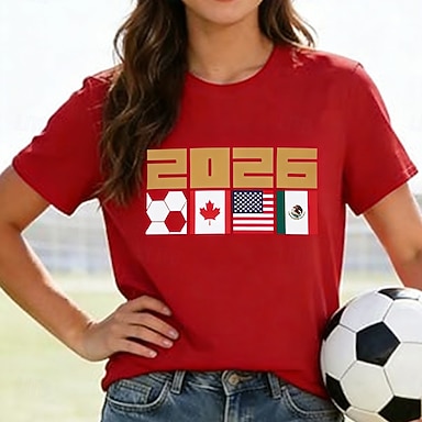 Maglietta da Donna World Soccer Match 2026 Stampa Grafica Lettera Elegante Classica Casual Maniche Corte Collo Tondo Lunghe Top Giornalieri Blu Rosso Rosso Blu Estate Primavera