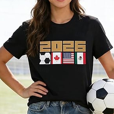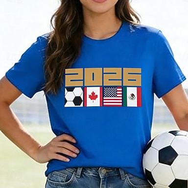 partita mondiale di calcio 2026 t-shirt da donna stampa grafica elegante classica casual manica corta girocollo top regolare casual quotidiano sport inchiostro blu estate primavera