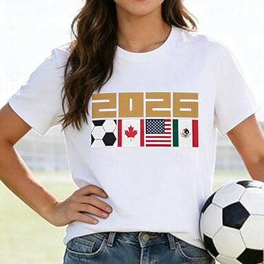 partita mondiale di calcio 2026 maglietta da donna stampa grafica squadra di calcio vintage elegante classico manica corta girocollo top regolare casual quotidiano bianco estate primavera