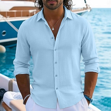 Per uomo Camicia Camicia di lino Camicia popover Camicia Estiva Abbigliamento da spiaggia Camicia button-down Tinta unica Vacanza Streetwear Nero Bianco Blu Cachi Manica Lunga Collo alla coreana