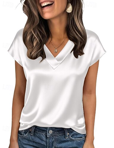 Per donna Elegant Top in raso Camicia in raso Top estivi Tinta unica Semplice Vintage Elegante Classico Manica Corta Girocollo Top Regolari Quotidiano Ferie Uscire Nero Rosa Cammello Verde Estate