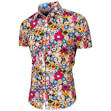 Per uomo Stampa Floreale Fiori tropicali Camicia hawaiana estiva Camicia con Bottoni Camicia Aloha Manica Corta Hawaiano Vacanza Ferie Abbigliamento mare Estate Collo ripiegato Stampa 3D Una tasca