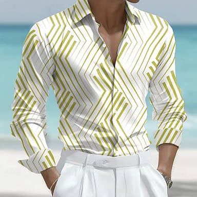 Per uomo Geometrico Colore sfumato Linea Camicia Camicia in raso Camicia elegante Manica Lunga Business Casual Vacanza Abbigliamento Quotidiano Estate Primavera Autunno Collo ripiegato Stampa 3D