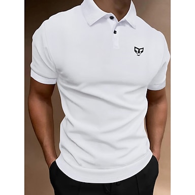 Per uomo Camicia da golf Golf Polo Ufficio Attività commerciale Collo a polo Classico Manica corta Essenziale Tigre Tinta unita / tinta unita Ricamato Pulsante frontale Estate Primavera estate Bianco