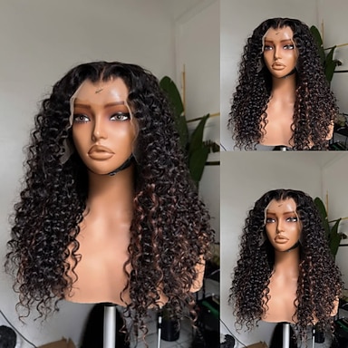Parrucca brasiliana con chiusura 5x5, senza colla, con pizzo frontale ondulato 13x4, con mèches bionde ondulate e capelli per bambini.