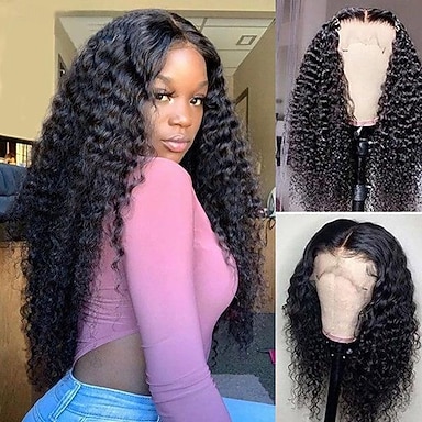 Parrucche frontali in pizzo con onde profonde 13x6, capelli umani, densità 180, parte profonda, parrucche frontali in pizzo con riccioli, capelli umani, pre-pizzicate, parrucca frontale in pizzo