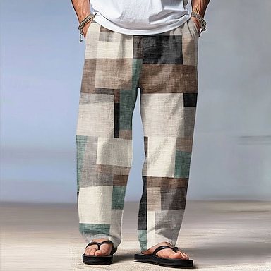 Per uomo Geometrico Plaid Blocco di colori Pantaloni Pantaloni casual Pantaloni Larghi Misura del girovita medio Moda Casa All'aperto Vacanza Coulisse elastica in vita Pantaloni tipo lino con tasche