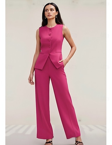 Per donna Gilet senza maniche Due Pezzi Lavoro Ufficio / Carriera Crepe Elasticizzato Elegante Semplice Senza Maniche Il giro Monopetto