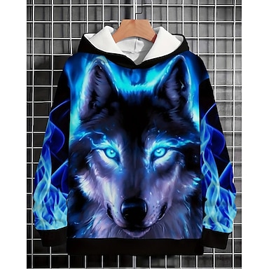 Ragazzi 3D Lupo Felpa con Cappuccio Manica Lunga Primavera Autunno Moda Streetwear Bambini 4-12 Anni Con cappuccio All'aperto Casuale Quotidiano Vestibilità regolare
