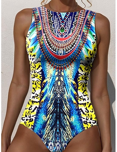 Per donna Costumi da bagno Intero Monokini Costume da bagno Controllo della Pancia Vita alta Snello Senza schiena Vacanza Abbigliamento da Spiaggia Grafico Geometrico Girocollo Senza Maniche Costumi