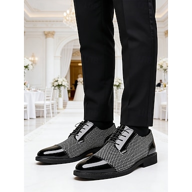 scarpe formali da uomo in similpelle a quadri bianchi e neri, calzature da matrimonio e da cerimonia per uomo