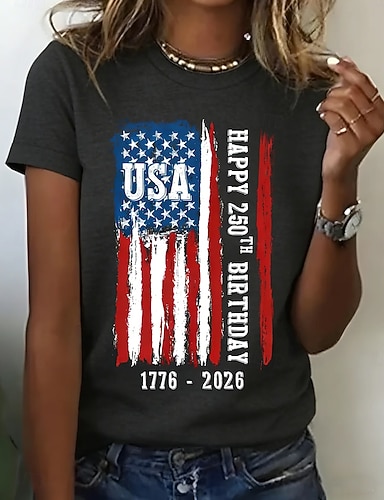 Giorno dell'Indipendenza Americana Per donna Maglietta Stampato Grafico Lettera Bandiera Americana Vintage Elegante Classico Manica Corta Girocollo Top Regolari Quotidiano Nero Estate Primavera