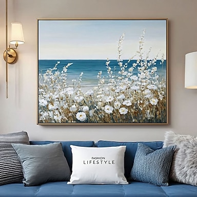dipinto a mano astratto originale paesaggio dipinto a olio su tela grande arte murale dipinto di fiori bianchi dipinto di paesaggio marino personalizzato arredamento moderno per soggiorno