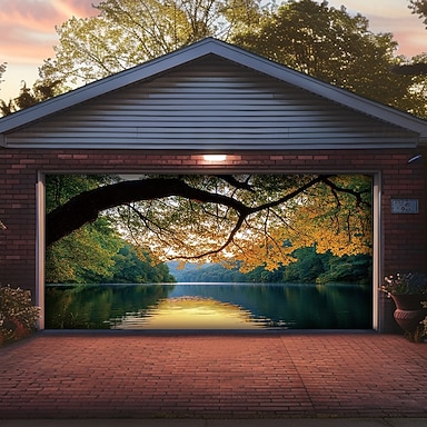 Copertura per porta del garage Grande appeso Lago 森林 Rustico 3D Pittoresco Da serata All'aperto Sfondi di ripresa Porta d'ingresso Arredamento per la casa