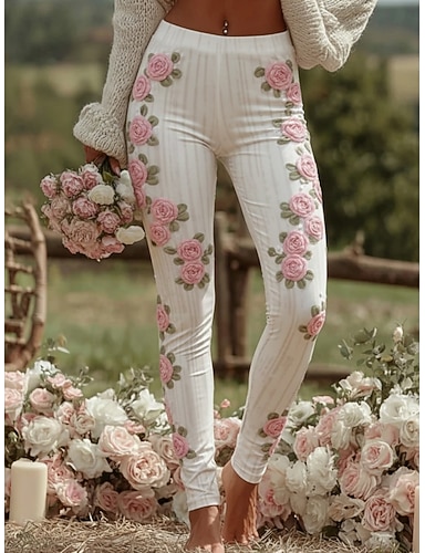 Per donna Leggings Leggings comodi Vacanza Vintage Essenziale Lunghezza intera Vita AltaPantsNatale Floreale Stampa Confortevole Elasticizzato Casuale Quotidiano All'aperto Blu Bianco Rosa Verde
