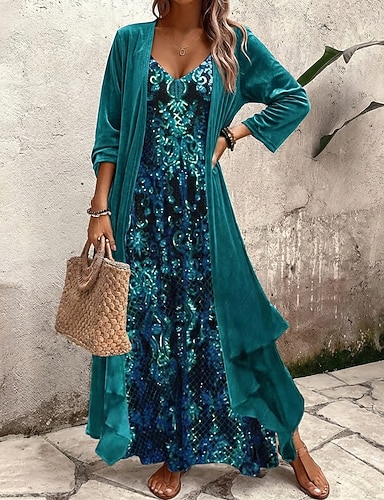 Per donna Abito maxi Vestito Casual Set di vestiti Abito Floreale Abito Sottoveste Elegante Moda Moderno All'aperto Vacanza Uscire Vestibilità regolare Floreale Manica Lunga Scollo a V Blu Estate