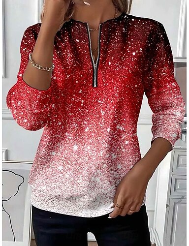 Felpa con Zip per Donna Grafica Moda Casual a Maniche Lunghe Top Regolari Collo Rotondo Quotidiano Streetwear Stampa con Zip Blu Rosa Rosso Arancio Autunno Inverno