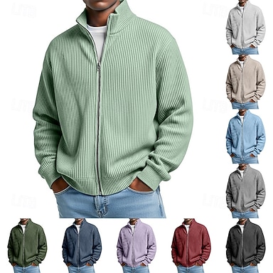 Per uomo Felpa Maglione elegante Cardigan Maglione con Zip A Coste Maglia Cerniera Tasca Tinta unica Collo alla coreana Riscaldamento Moderno Contemporaneo Abbigliamento quotidiano Uscire