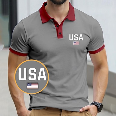 4 luglio 2026 250° Per uomo Bandiera Americana Polo Manica Corta Magliette polo Camicie con Colletto Casual All'aperto Athleisure Stampa 3D Estate Blu Rosso Grigio