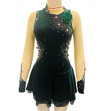 Abito da pattinaggio artistico Per donna Ragazze Pattinaggio sul ghiaccio Vestito Verde scuro Patchwork Orlo asimmetrico Rete Spandex Alta elasticità Allenamento Competizione Vestiti da pattinaggio