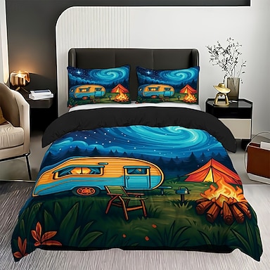 Set copripiumino in piuma da 3 pezzi con falò e cielo stellato per letto matrimoniale, morbido copripiumino con 2 federe – biancheria da letto di lusso per camera d'albergo, accogliente & comodo