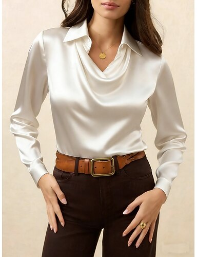 Per donna Camicia Elegant Top in raso Maglia di seta Bottoni Tinta unica Elegante Manica Lunga Scollo a V Top Regolari Quotidiano Lavoro Ferie Nero Bianco Champagne Grigio Estate