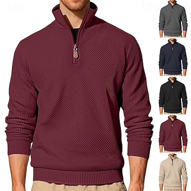 Per uomo Maglia Maglione Felpa con zip corta Rosso bordeaux Nero Verde militare Blu marino Blu Reale Colletto Mao Semplice Zip a un quarto Sport & Outdoor Casuale Quotidiano Vintage Streetwear