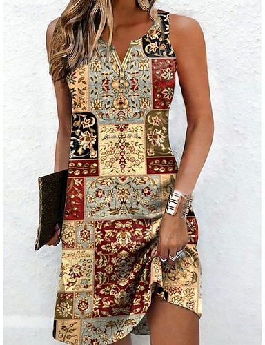 Per donna Mini Abito Abito a Tubino Vestito Estivo Abito Estivo Abito a spalle scoperte Vacanza Casual Quotidiano Ferie Uscire Vestibilità regolare Floreale Grafico Tribale Senza Maniche Scollo a V