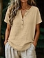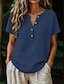 Per donna Maglietta Camicia in finto lino Bottoni Semplice Moda Elegante Classico Senza Maniche Manica Corta Girocollo Top Regolari Quotidiano Uscire Weekend Blu Bianco Rosso Viola Marrone Estate