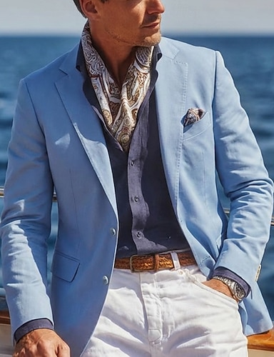 Uomo Completi Matrimonio in Spiaggia Casuale Azzurro cielo Beige Primavera, Autunno, Inverno, Estate Tuta Moda Quotidiano Tinta unita Vestibilità standard 2 pezzi Monopetto a un bottone