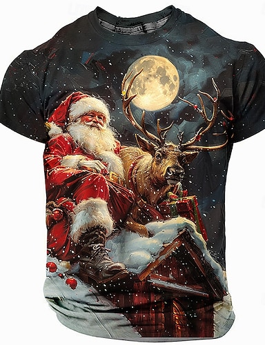 natale uomo babbo natale 3d t-shirt babbo natale cervo moda athleisure 3d stampa tee street sport outdoor nero manica corta girocollo estate primavera abbigliamento abbigliamento s m l xl xxl xxxl