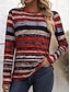 Per donna Maglietta Grafico A righe Vintage Moda Elegante Manica Lunga Girocollo Top Regolari Quotidiano Weekend Stampato Rosso Estate Primavera Autunno