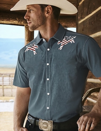 Per uomo Abbigliamento western Polo Maglia da golf Manica Lunga Magliette polo Camicie con Colletto Vintage Casual Abbigliamento da vacanza Abiti da festa Stampa 3D Bottoni Autunno & Inverno Blu