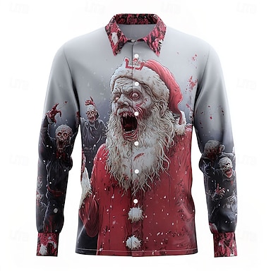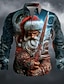 Per uomo Babbo Natale Zombi Horror Camicia Camicia con Bottoni Manica Lunga Gotico punk oscuro All'aperto Ferie Estate Primavera Collo ripiegato Stampa 3D camicie con colletto Grigio chiaro Blu scuro