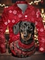camicie stampate divertenti da uomo di natale teschio gotico abbigliamento quotidiano uscite weekend autunno / autunno turndown maniche corte nero, bordeaux, blu navy scuro s, m, l camicia in tessuto