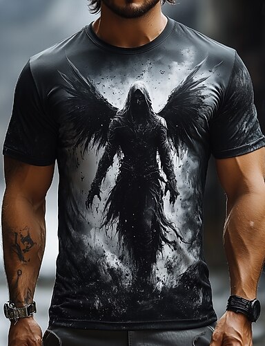 Per uomo La Morte Angelo Mietitrice Maglietta Manica Corta maglietta Stampa 3D Girocollo Camicia Esagerato Designer Orrore Feste Streetwear Casuale Nero Rosso Blu Estate Primavera Tutte le stagioni
