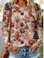 Maglietta T Shirt Donna Natale Babbo Natale Fiocco di Neve Grafica Claus Vintage Moda Elegante Manica Lunga Collo tondo Regular Tops Quotidiana Weekend Stampa Blu Marrone Estate Primavera Autunno