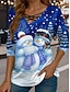 Natale Per donna Maglietta Pupazzo di neve Vintage Elegante Classico Manica Lunga Scollo a V Top Regolari Quotidiano Patchwork Stampato Blu Rosso Viola Verde Autunno Inverno