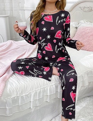 Per donna Pigiama Abbigliamento da Casa Set Pigiama Casual Cuore Pigiama in raso di seta Elastico in vita Pantalone Quotidiano Casa Vacanza Manica Lunga Girocollo Fucsia Autunno Inverno Vestibilit