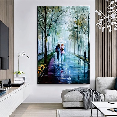 coppia amanti pittura a olio fatta a mano pioggia coppia amanti pittura a olio - dipinto a mano impressionista amanti di Parigi pittura a olio su tela spatola arte dipinti a olio miglior regalo per