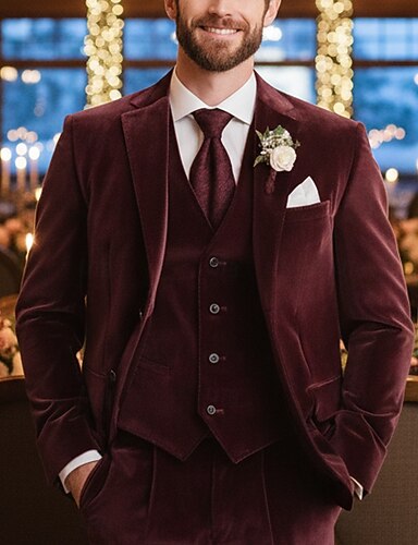 Uomo Smoking Abiti da festa Casuale Feste Borgogna Inverno Tuta Bavero a lancia Natale Quotidiano Tinta unita Vestibilità su misura 3 pezzi Monopetto Due Bottoni