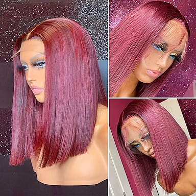 parrucca frontale in pizzo di capelli umani bordeaux 99j # capelli colorati parrucca bobo corta capelli lisci parrucca in pizzo densità 180% per donne