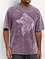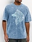 T-shirt vintage streetwear da uomo con nodo celtico, tribale, testa di lupo, totem vichingo, lavaggio acido, grafica, manica corta, girocollo, casual, abbigliamento quotidiano, abbigliamento firmato,