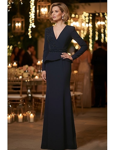 Tubino Colonna Lunghezza al pavimento Perline ricamate Abito Formale Abito da madre della sposa Abito da ballo con mantello Abito da Sera Abito formale Elegante Brillanti Manica Lunga Collo alla