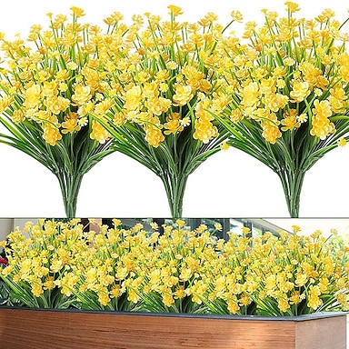 12 mazzi di fiori artificiali di margherite, steli di verde finto resistenti ai raggi UV, fiori da cimitero per esterni, interni, feste, giardino, fioriere sospese, fioriere da finestra, decorazioni