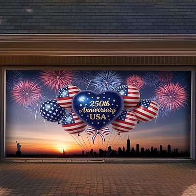 4 luglio 2026 250° Memorial Day Arazzo Copertura Porta Garage Grande Sfondo Appeso Bandiera Americana Vintage 3D Festa Patriottica Esterno Fondali per Riprese Porta d'Ingresso Decorazione per la Casa