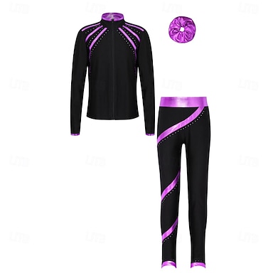 giacca da pattinaggio artistico con pantaloni da donna e da ragazza, pantaloni da pattinaggio sul ghiaccio, leggings, completi, nero, blu, fucsia, pile, spandex, elasticizzati, allenamento, pratica,
