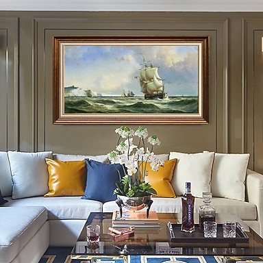 Dipinto a olio fatto a mano su tela, decorazione da parete, paesaggio classico, barca a vela per la decorazione domestica, senza cornice, senza cornice, non stirato