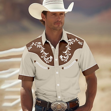 Per uomo Camicia Camicia Western Camicia da cowboy Manica Corta Stile Western Tribale Estate Primavera Colletto a Camicia Giallo Verde Cachi Blu scuro
