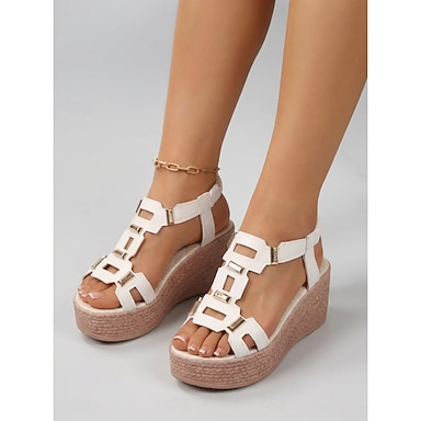 sandali espadrillas con plateau color avorio da donna, scarpe estive con zeppa intrecciata per invitati a matrimoni in spiaggia &vacanza in resort